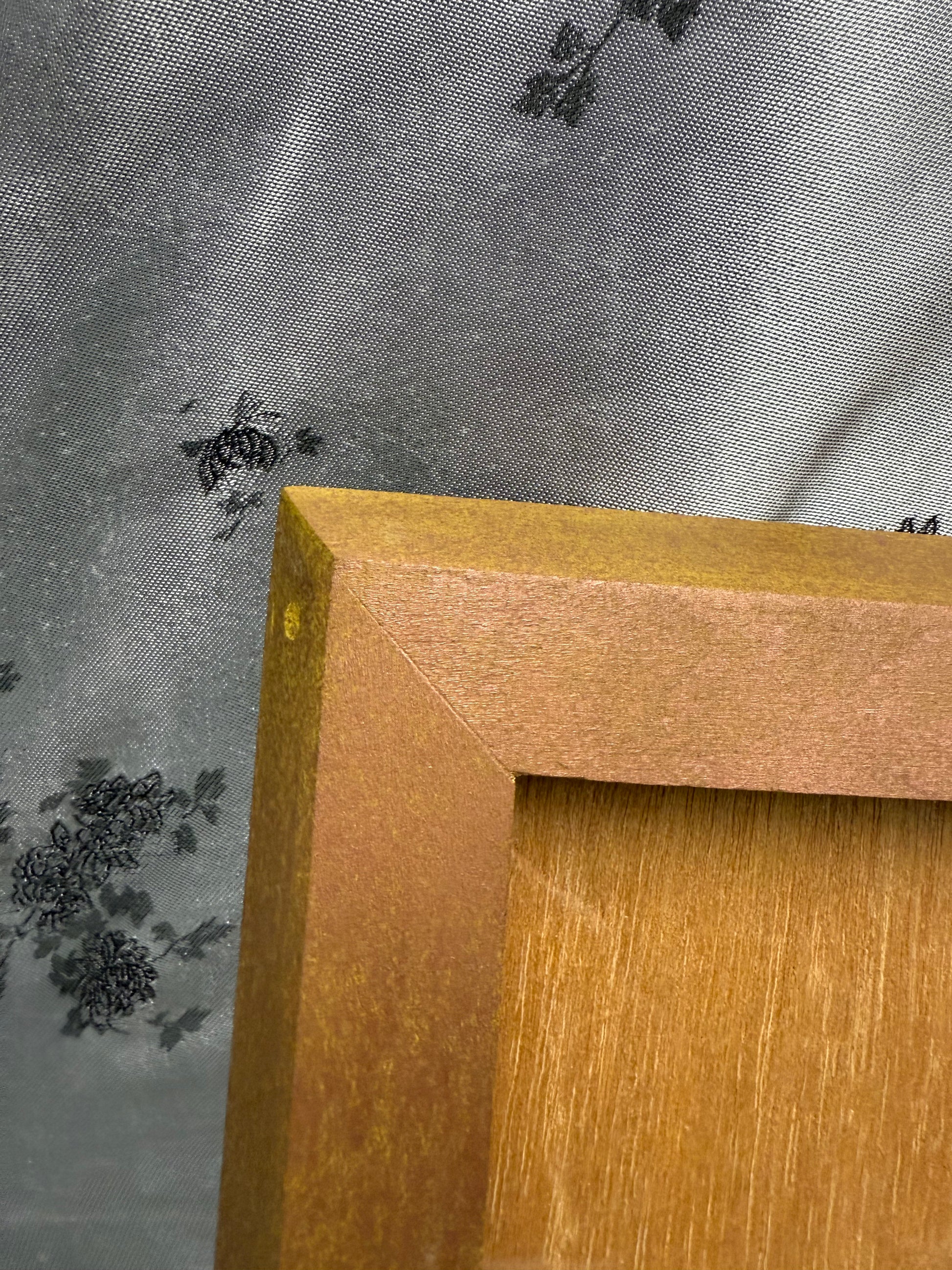 This unique 4x6 picture frame is handcrafted from American Cherry reclaimed from a coffee table, featuring beautiful natural wood grain and character. Finished with a stunning Daffodil stain, gold and copper spray paint accents, and satin poly, it offers both elegance and functionality, perfect for displaying your cherished memories in any refined home setting.