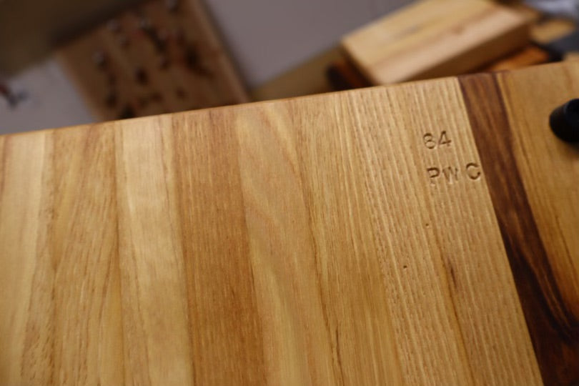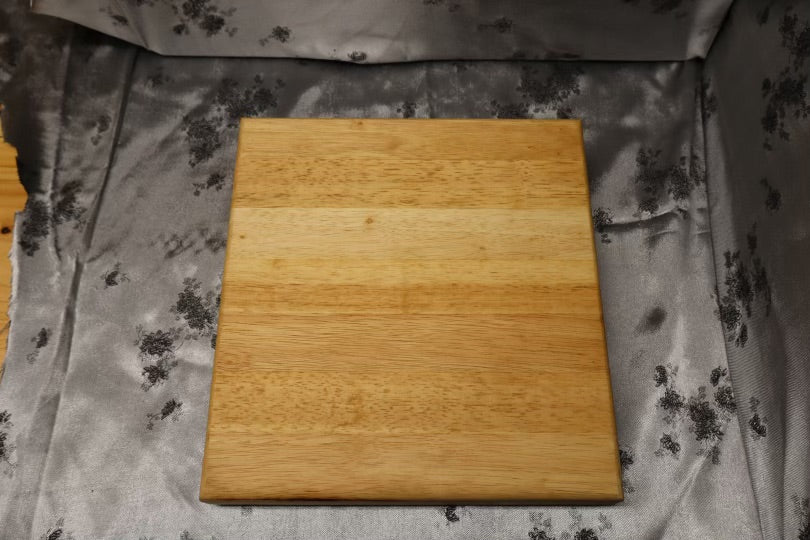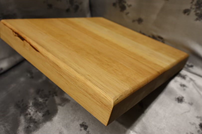 This clean looking, simple board was made from a kitchen table, and features lots of maple. It is particularly premium in the fact that its very large, and is made from particularly wormy maple. It's dimensions are 11“ x 11-1/2“ by 1-1/2”.