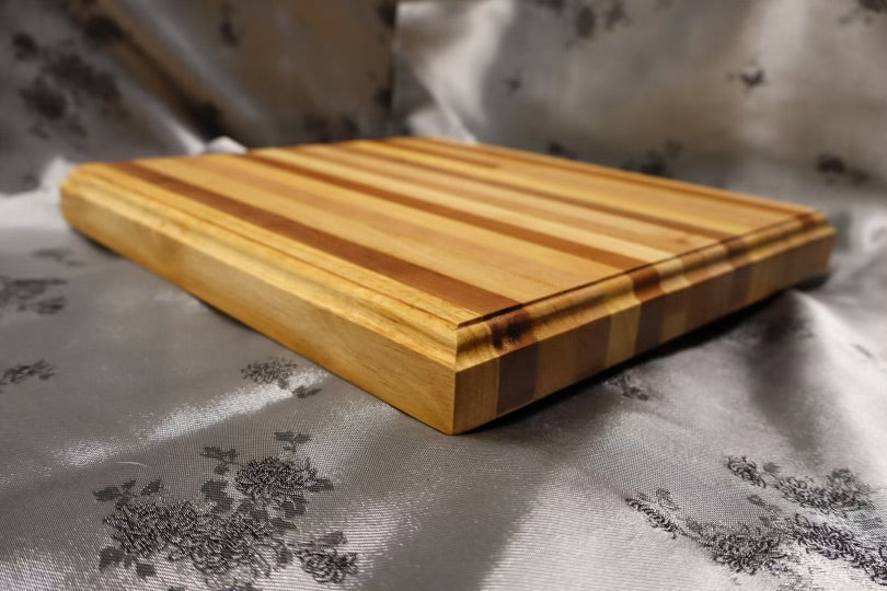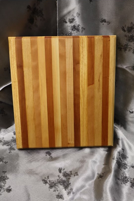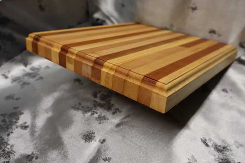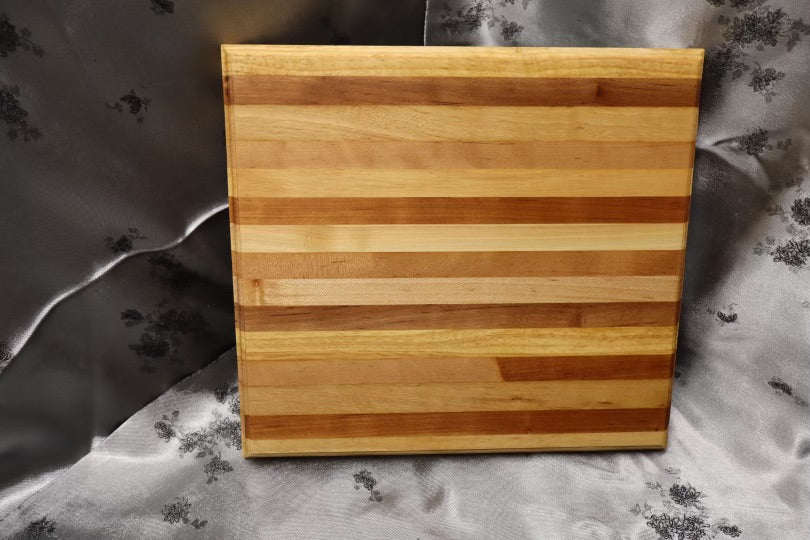 This classic, timeless board features a Crown chamfer, and was made from a Coffee and end table. It consists of American cherry, and Premium oak wood to ensure it lasts generations with the proper care. It's dimensions are 10-3/4” x 11-3/4” x 1-1/4”.