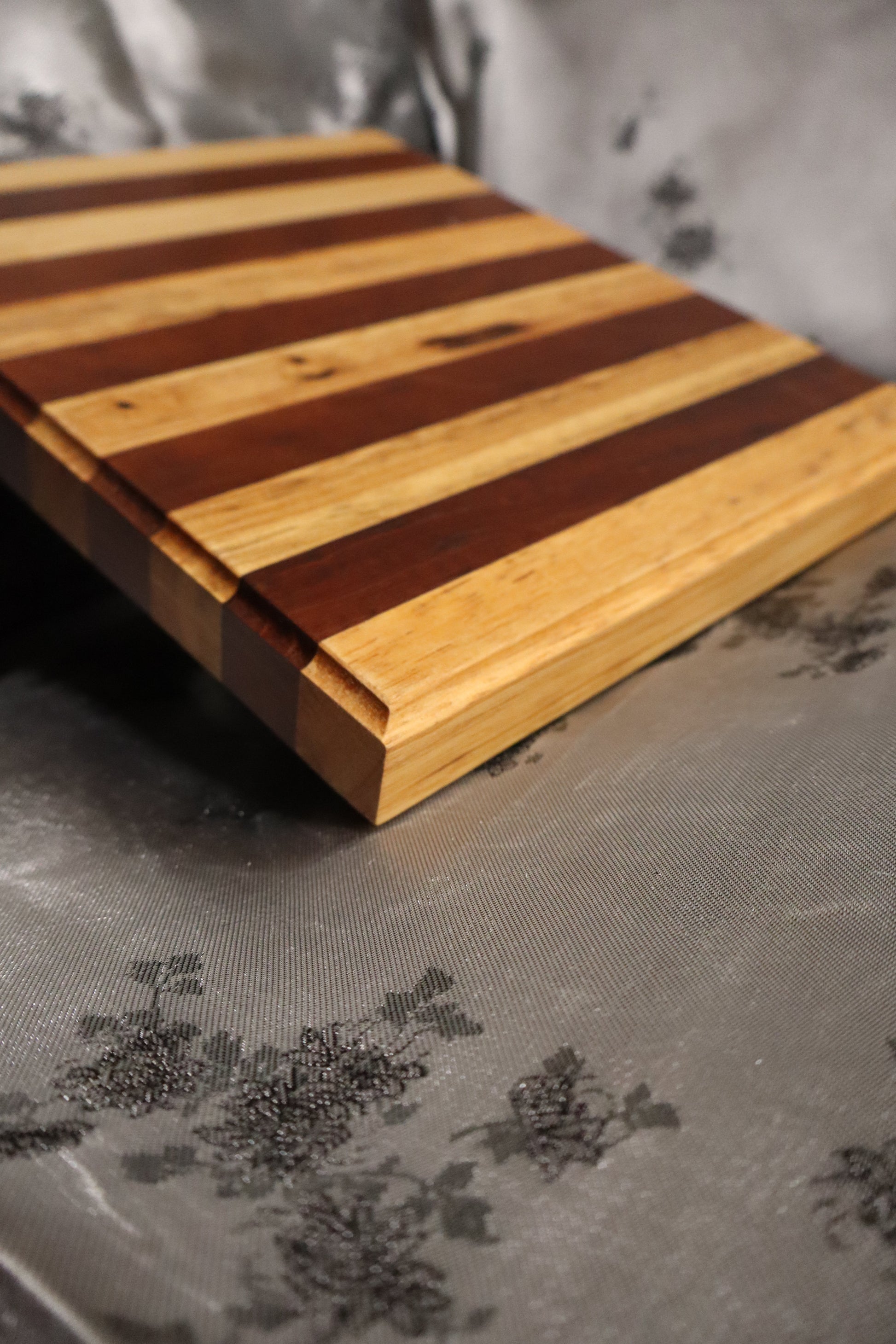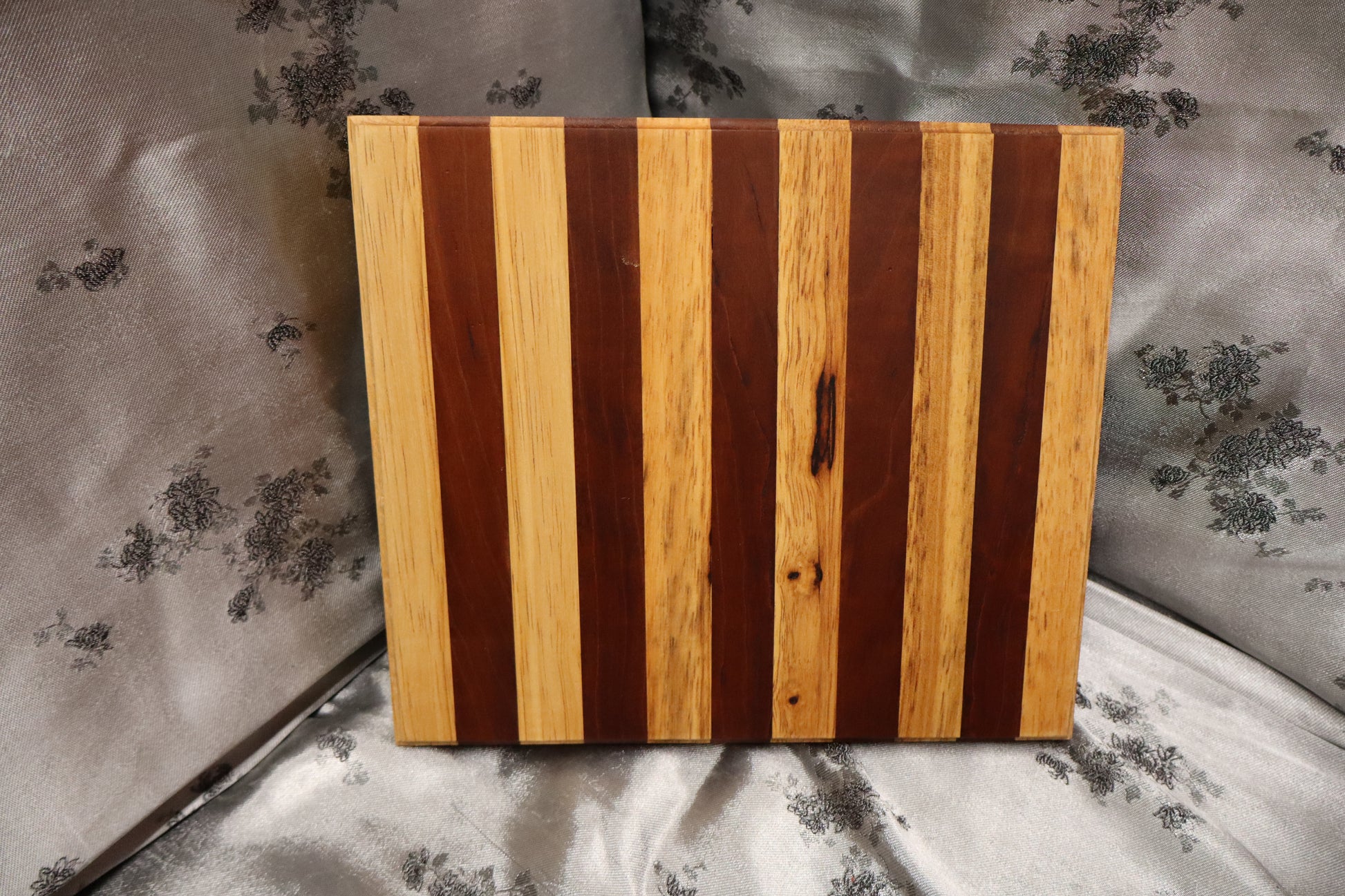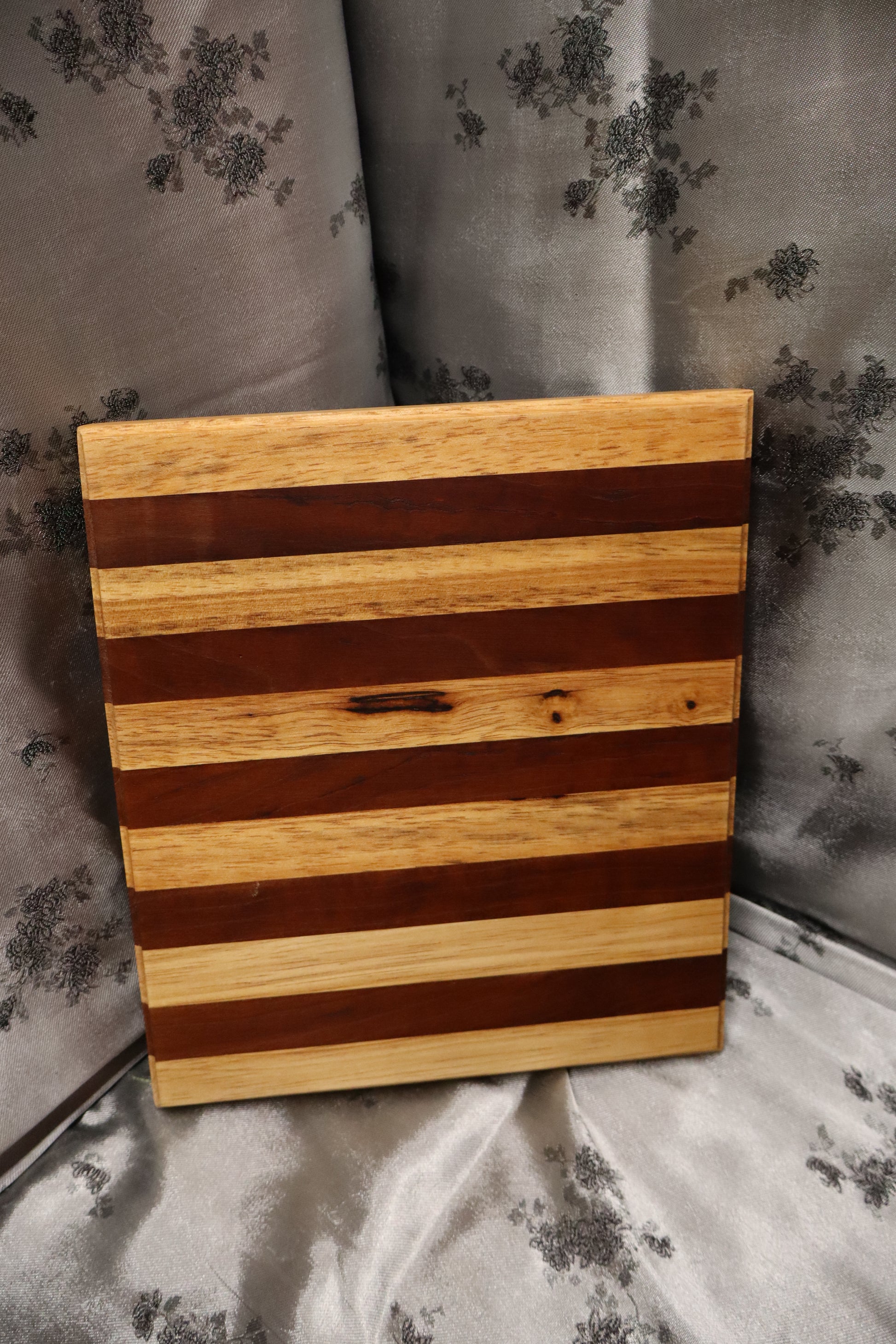 This exotic, Brazilian Cherry and Maple board will have your kitchen looking extravagant. The darker cherry colors contrast well with the maple and it has an ogee beveled edge. Perfect for any kitchen task! - 9-1/2” x 10-3/4” x 1-1-4” dimensions - made from an End table and kitchen table