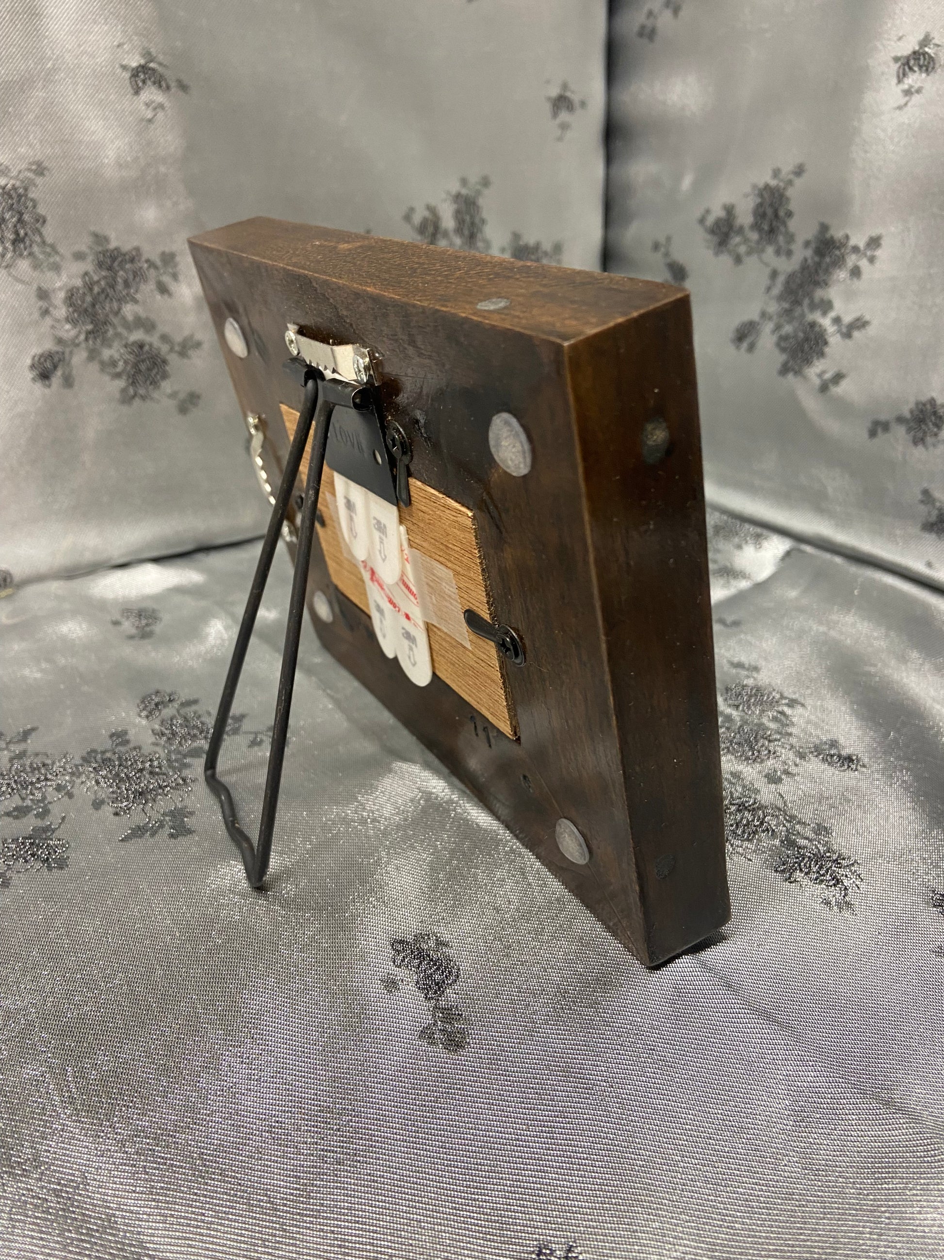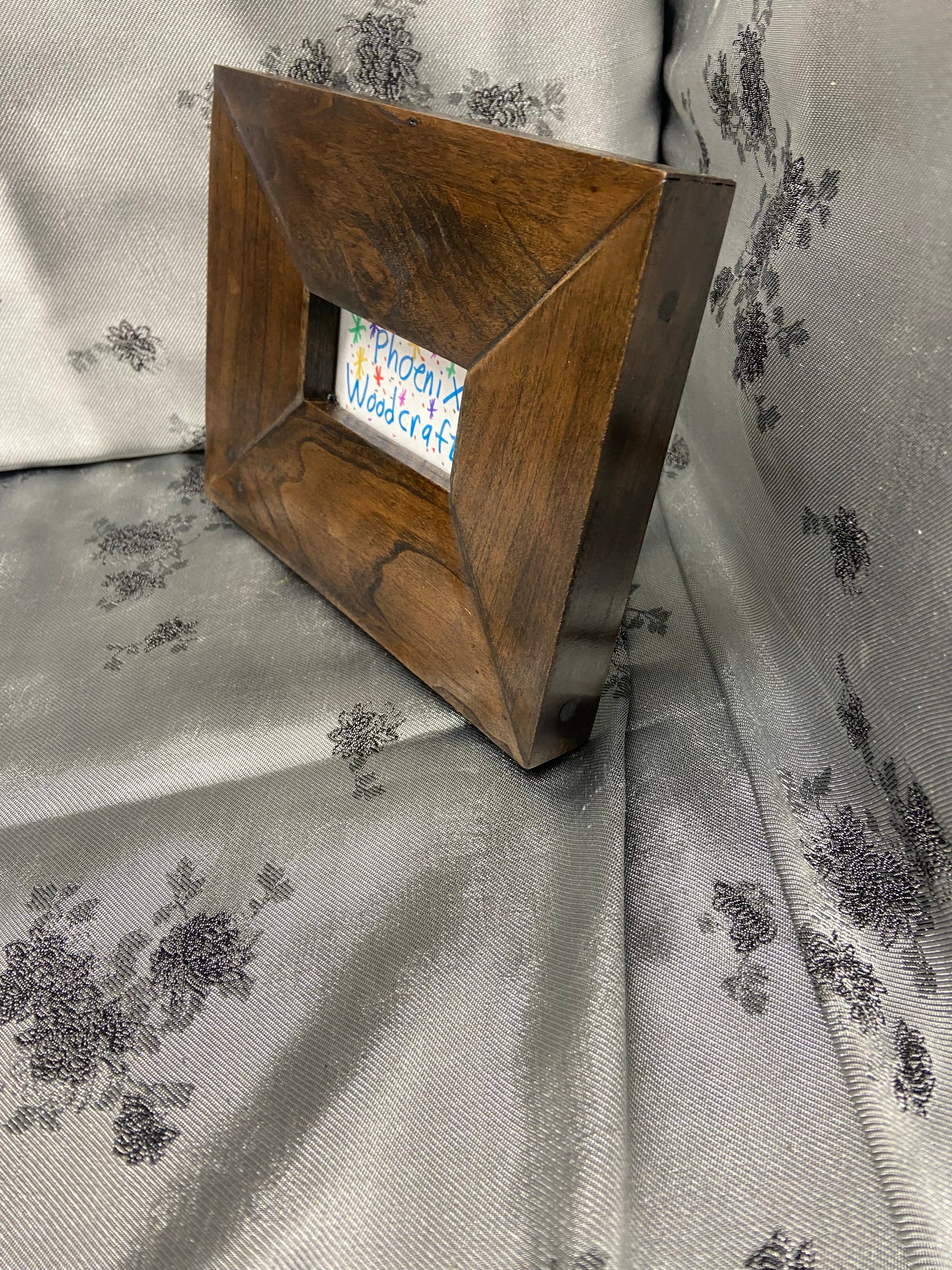 This tiny, but adorable frame is made from American cherry wood, and stained with an ebony color! it's tiny picture size is perfect for those novelty, wallet pictures, or just something goofy. It's dimensions are 2” x 3-1/2”, and the picture size is 1-1/4” x 2-3/4”.