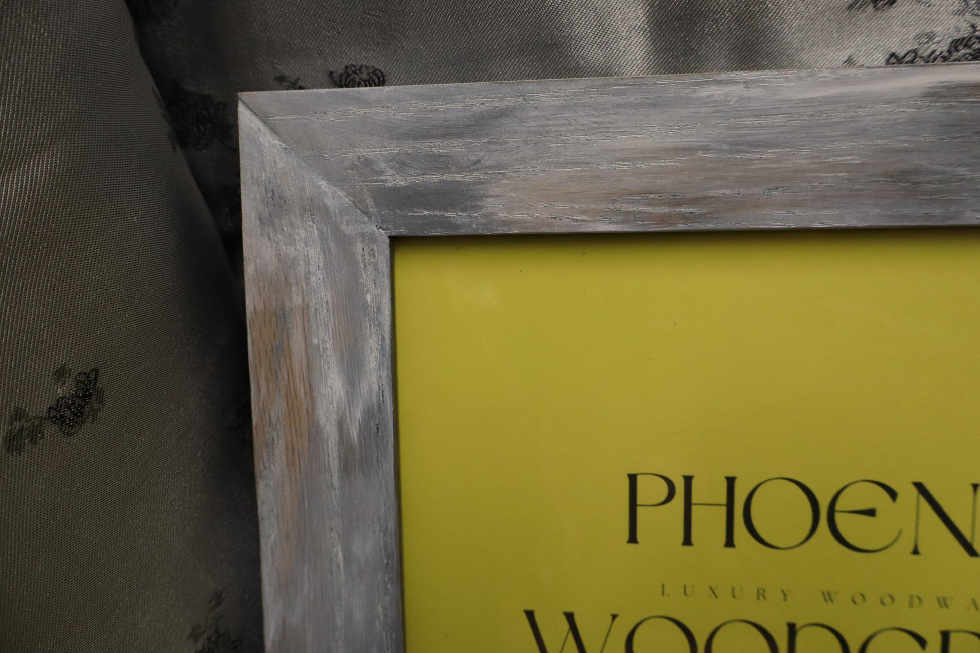 This beautiful Red Oak frame has a Distressed White and Gray finish and semi-gloss polyurethane coating. It is sure to add a cozy feel to any space.